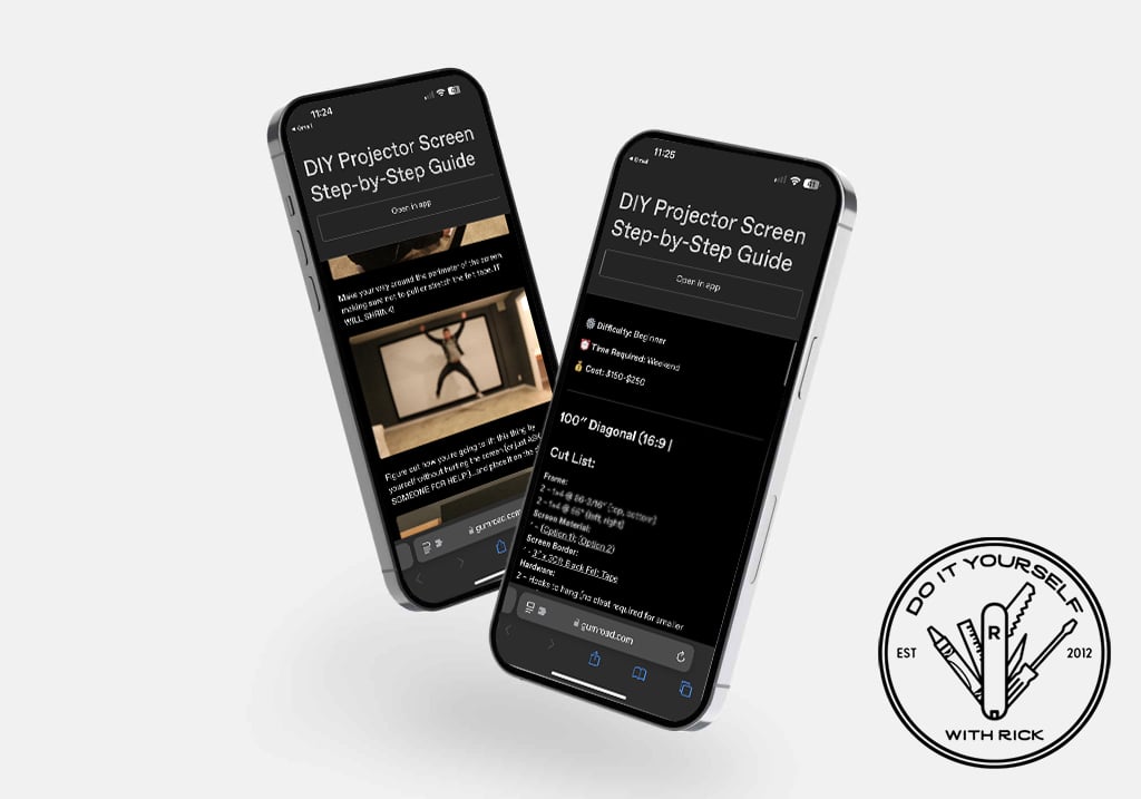 Here's an updated step-by-step guide to build your own DIY Projector Screen in the following sizes: 100", 120", 135", 144" and 150"